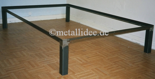 Ein Bettgestell aus Winkelstahl 50x50 mit Füßen aus Vierkantrohr und PVC