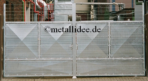 Vierkantrohr-Rahmen mit Blechfüllung und Stacheldraht