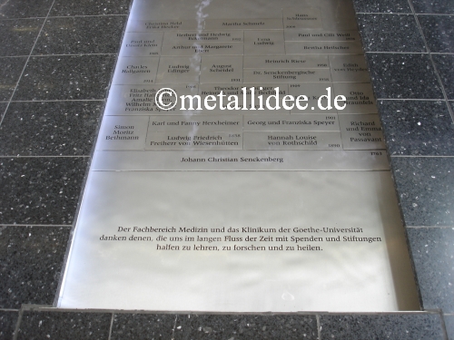 Angefaste, gravierte Edelstahl Bleche mit Spezial Kleber.